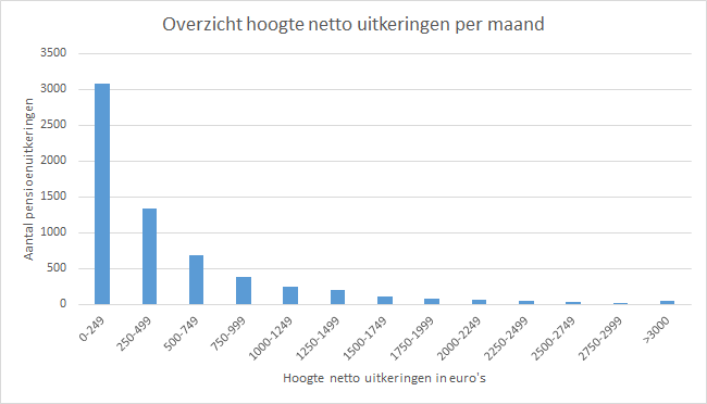 Het netto pensioen tot 250 euro wordt per maand in 2018 gemiddeld 0,23 euro minder dan in 2017. Tot 1.500 euro loopt dit op naar 1,74 euro. Daarboven loopt de gemiddelde daling verder op naar iets meer dan 4 euro.